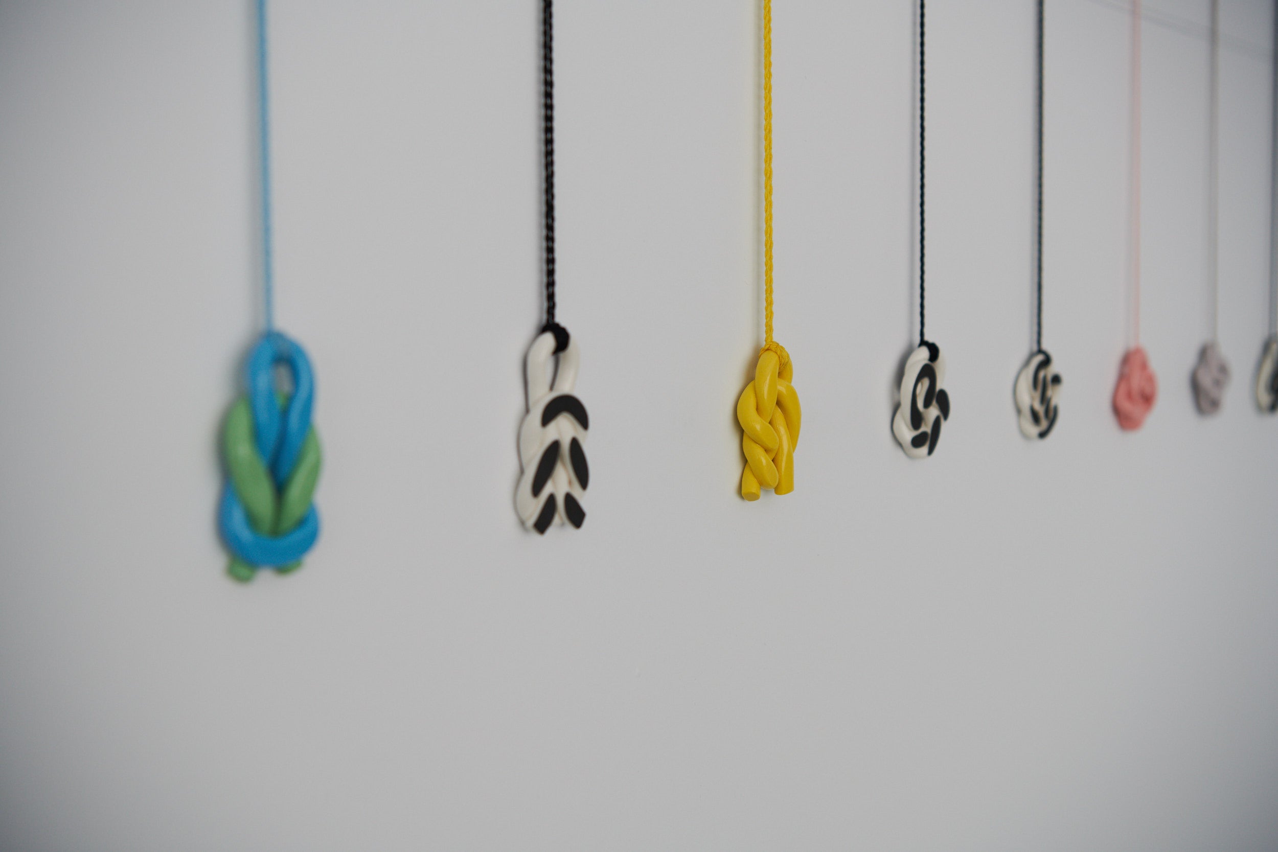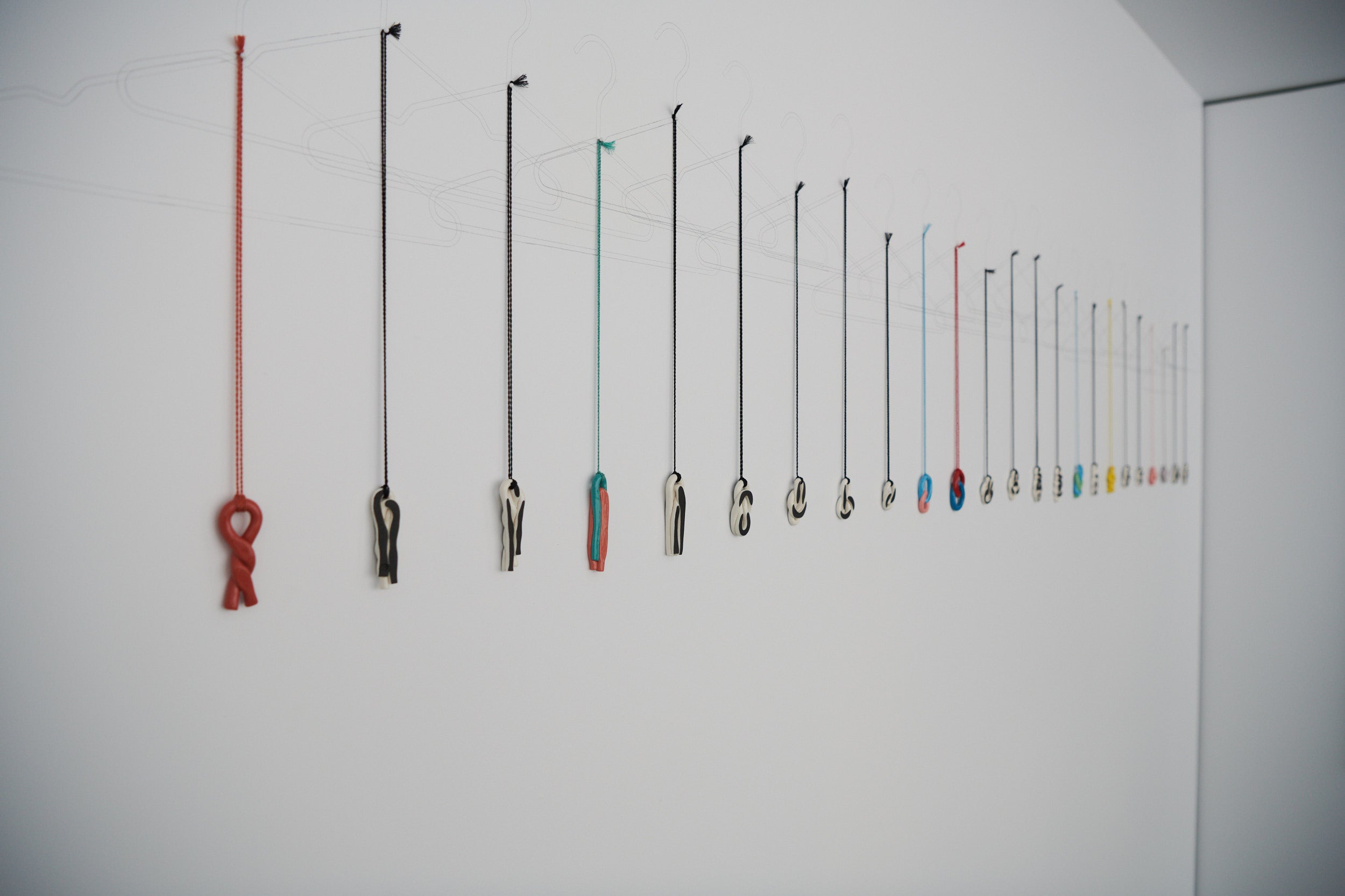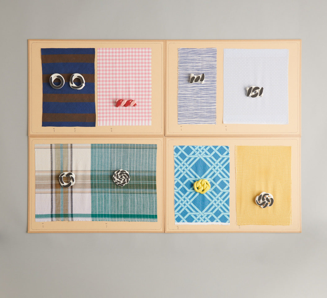 Clay-tailoring. Plates and candlesticks, brooches, bracelets and pendants constructed from earthenware and porcelain clay. Rolling, layering, twisting, knotting, pressing; here patterns are revealed by the making process. Things gather in the living room and around the dining table. Although they might seem quite different they get along well.