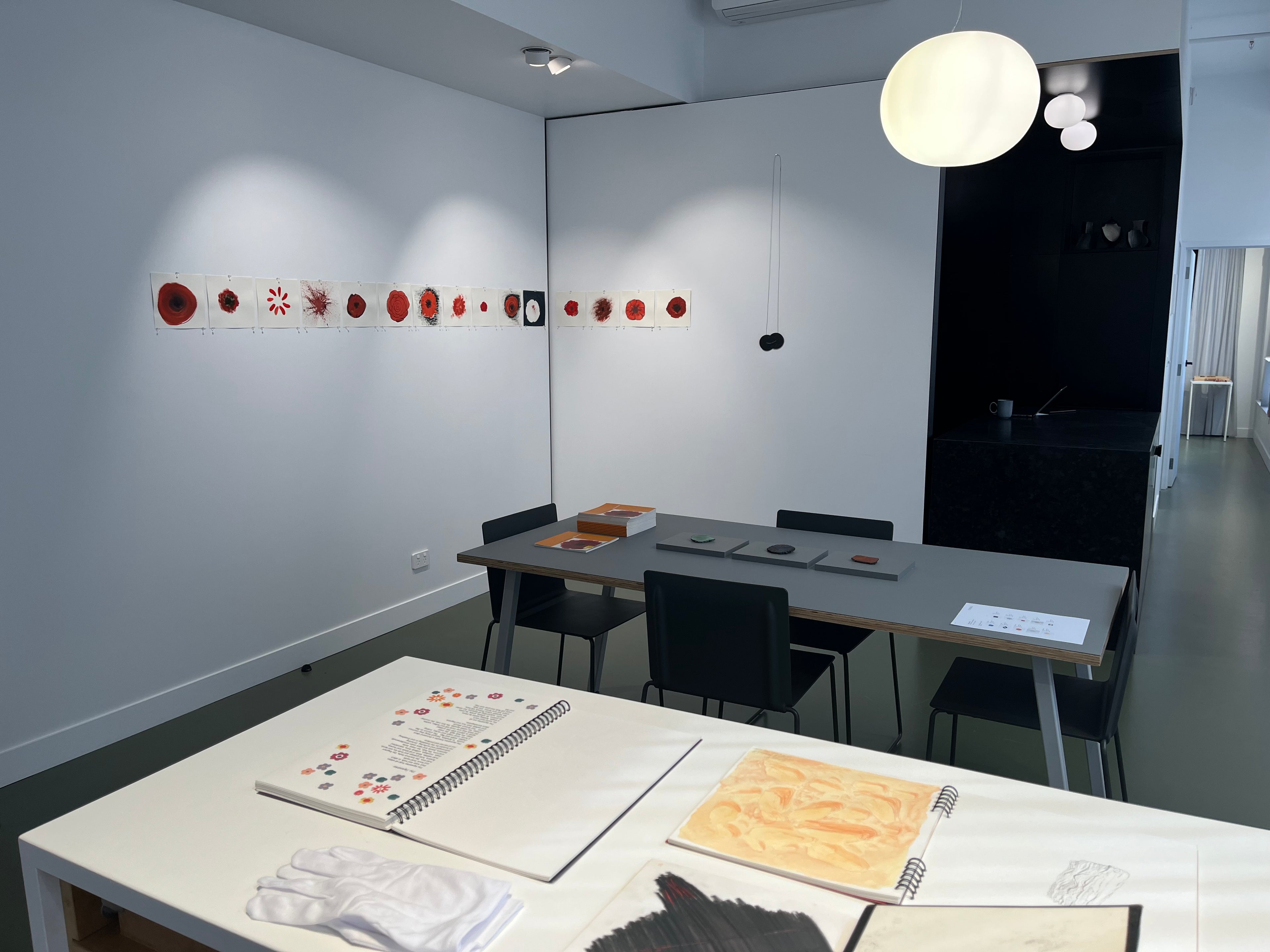 I spent the night in Melbourne at Funaki Gallery surrounded by the work of Margaret West (1936-2014), one of Australia's most important contemporary jewellers. Moments from Small Journeys is an exhibition of works from West’s estate, focusing on her carved stone brooches alongside a selection of her drawings, notebooks, poetry and a pendant. It's moving to be here alone with West's pieces. I've recently started working with a collection of materials from her studio, left behind when she passed away andgenerously gifted to me by her dear friends Valerie Odewahn and Julie Ewington. It's a weighty, precious inheritance, and I inhale vast mouthfuls of air as I stand here contemplating the artworks I might create with it.