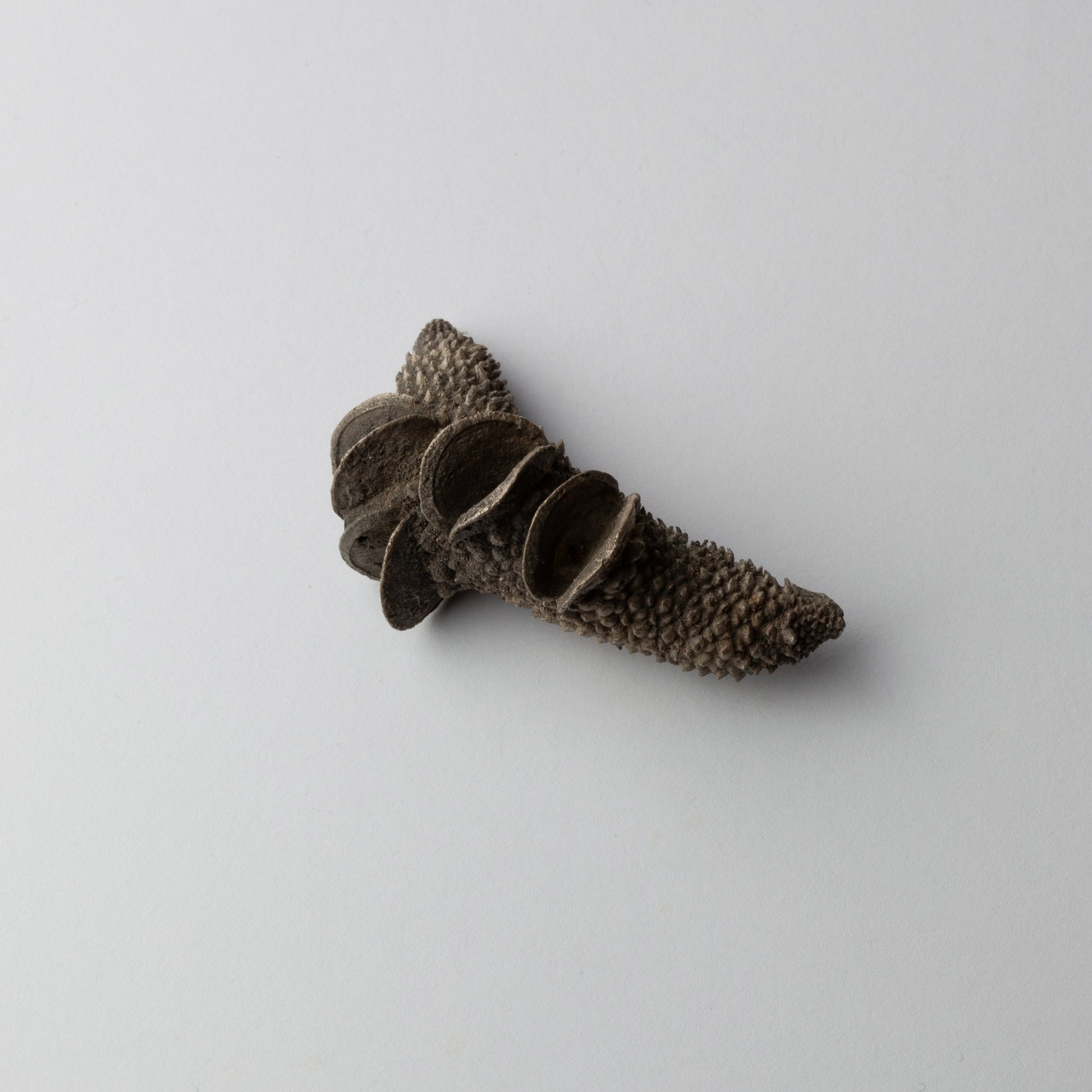 For over 40 years, Marian Hosking has interpreted the Australian landscape through silver jewellery and vessel work. Her practice focuses upon the embodiment of the personal meaning of place and landscape in intimate objects, with work characterised by research into the history, languages and processes of jewellery and silversmithing. In particular, Hosking explores the potential for the miniature to act as a ‘souvenir’ or paradigm for such ideas.